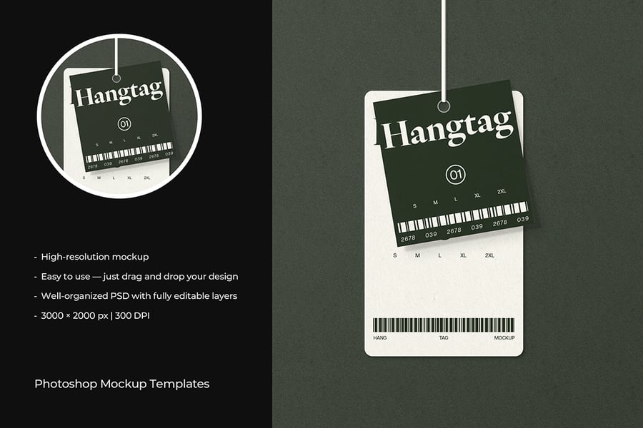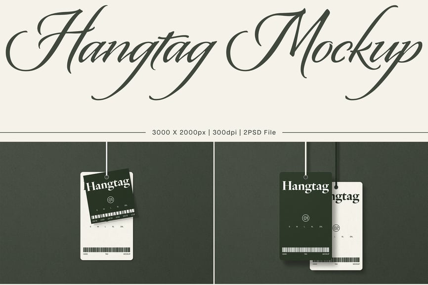 这款高分辨率吊牌样机拥有逼真的纹理和光照效果。您可以使用智能对象轻松自定义设计,并更改背景颜色以匹配您的品牌形象。非常适合展示时尚标签、产品吊牌或品牌标识。