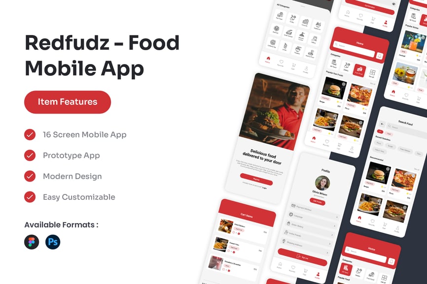 隆重推出 **Redfudz – 食品移动应用 UI 套件**