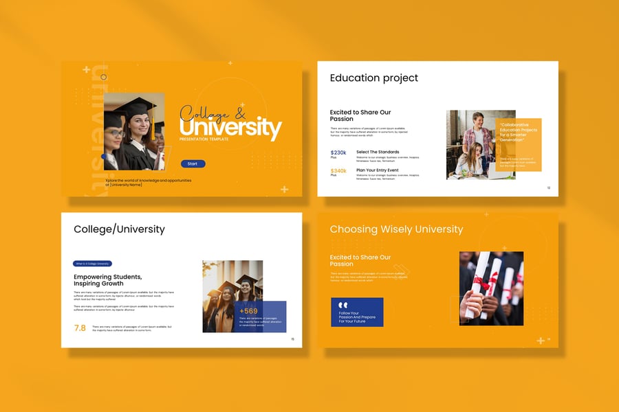 使用大学及学院演示文稿模板,以专业简洁的方式展示您的作品。这款模板设计简洁现代,功能强大,包含创意照片布局、信息图表、表格、矢量图标、图表以及大量实用功能,可将您的作品和公司简介提升到一个新的高度。