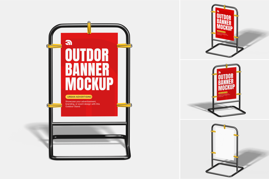 使用这款高级户外展架海报样机套装,以专业且引人注目的方式展示您的广告海报、活动宣传图或品牌视觉效果。该套装专为营销人员和创意专业人士设计,包含高质量的 PSD 文件,可通过智能对象图层轻松进行自定义。非常适合以清晰的细节和逼真的光照效果展示户外促销活动。