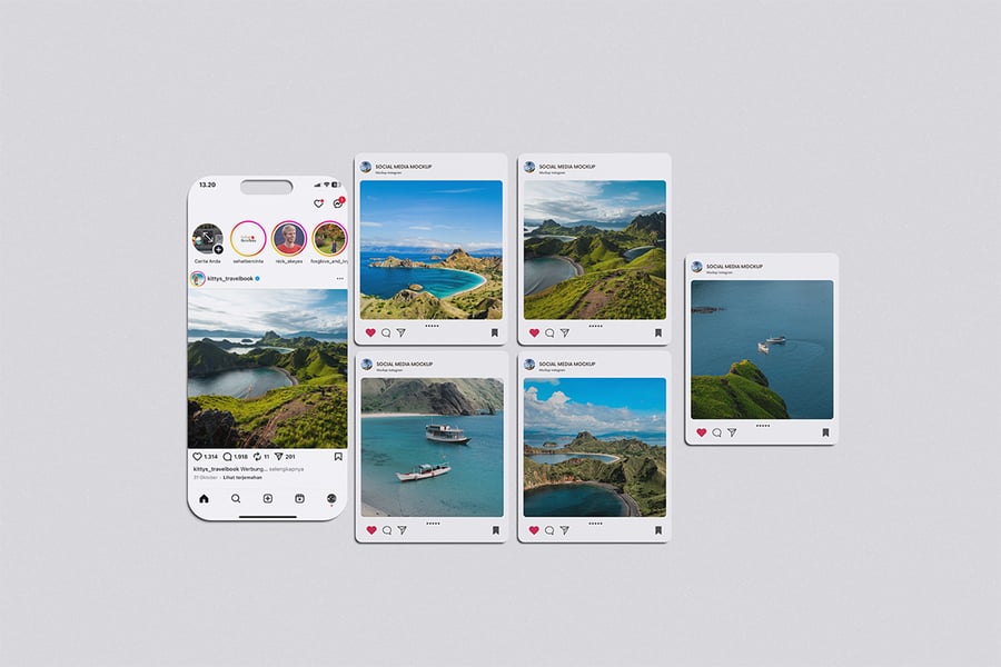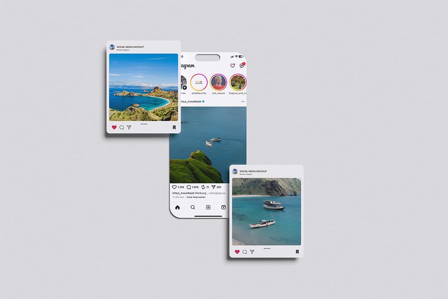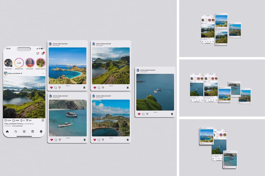 用这些精美的素材样机展示您高质量的 Instagram 社交媒体样机设计。此样机包含 4 个元素,并配有分层清晰的 PSD 文件。此外,此样机还采用了智能对象功能,这意味着您只需几秒钟即可轻松快捷地将当前设计替换为您自己的设计。
