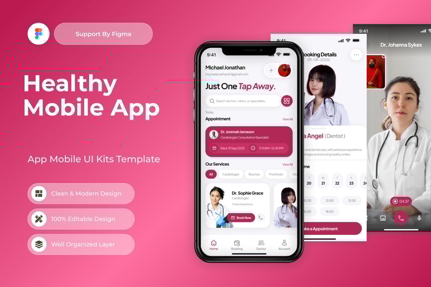 使用这款专业设计的模板,轻松打造极具影响力的医疗健康移动应用。