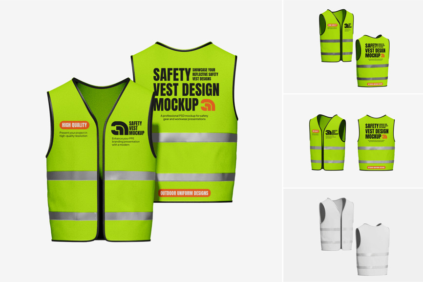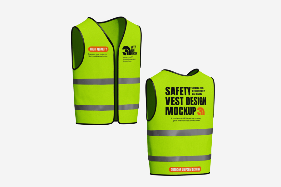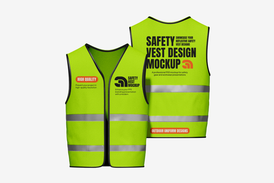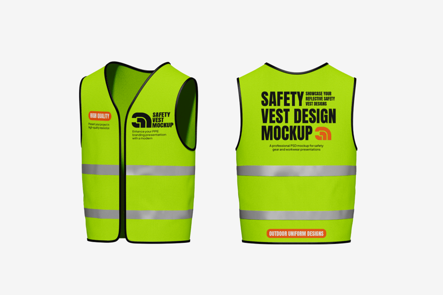 这款高级安全背心样机套装,助您以专业逼真的方式展示安全装备、制服品牌或工业服装设计。专为建筑、物流和工业领域的创意人员和企业打造,该样机套装提供高质量的 PSD 文件,可通过智能对象图层轻松编辑。非常适合展示徽标位置、颜色变化或完整的背心设计概念。