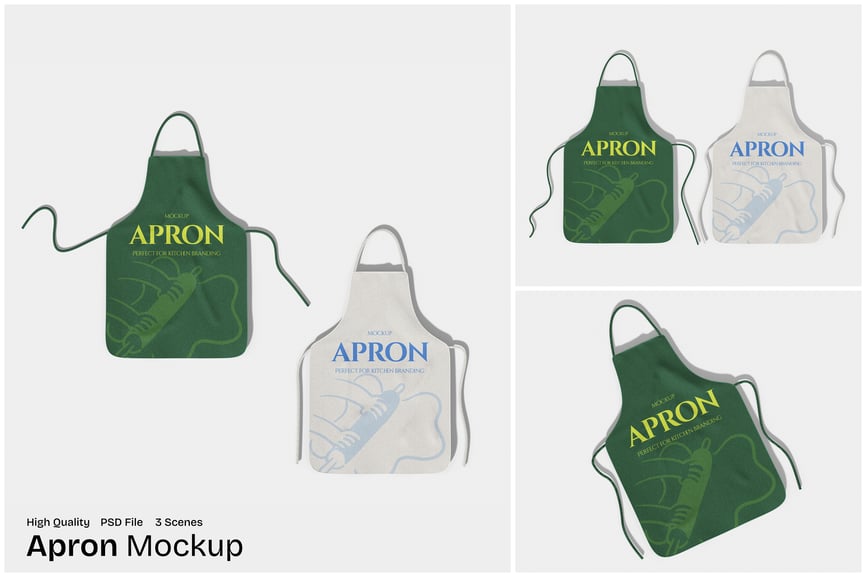使用这款**围裙样机**展示您的餐饮或手工艺品牌,它能够精准地展现面料纹理和印花位置。非常适合用于**餐厅品牌、咖啡馆标识、商品或手工产品标签**。
