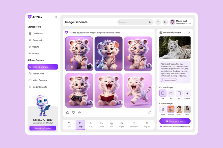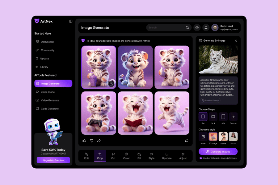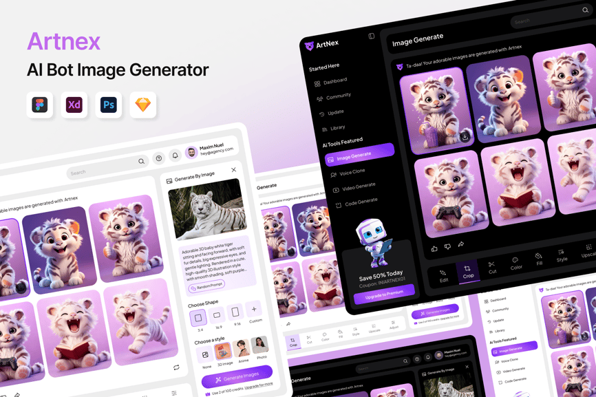 Artnex 是一款现代且视觉效果精美的 UI 工具包,专为 AI 驱动的图像生成平台而设计。Artnex 采用简洁的布局和直观的导航,帮助用户轻松创建、优化和管理 AI 生成的图像。无论您是构建创意工具、数字艺术平台,还是专注于提高效率的设计助手,Artnex 都能为任何图像生成工作流程提供灵活的基础。