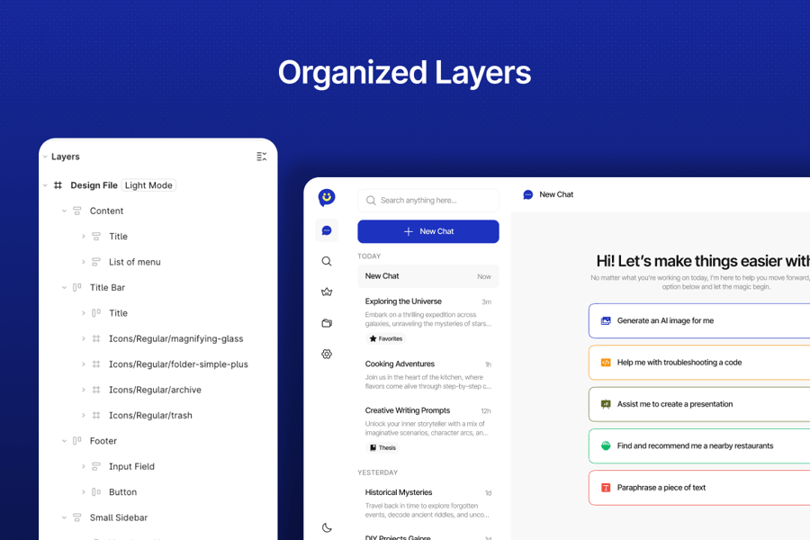 所有组件均基于矢量,完全可自定义,并采用分层结构,方便在 Figma 中轻松编辑。