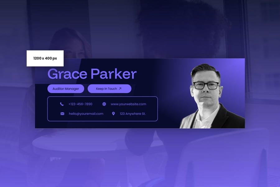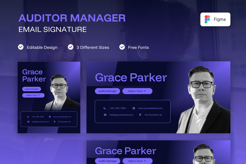 简洁专业的电子邮件签名设计,适用于商务或个人用途。一款设计提供三种不同尺寸,满足您的多种需求。现代、优雅、简洁的设计风格,令您的电子邮件签名更显专业。