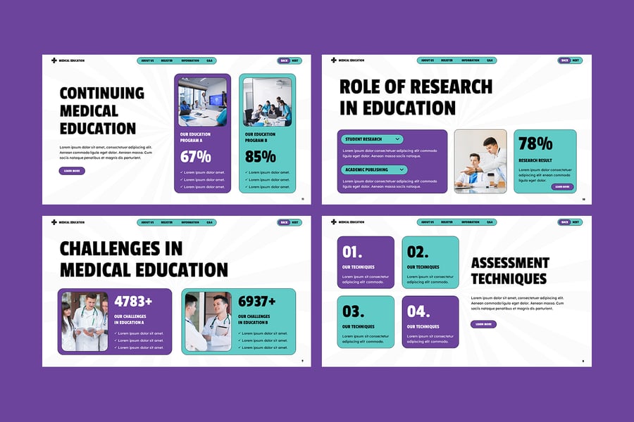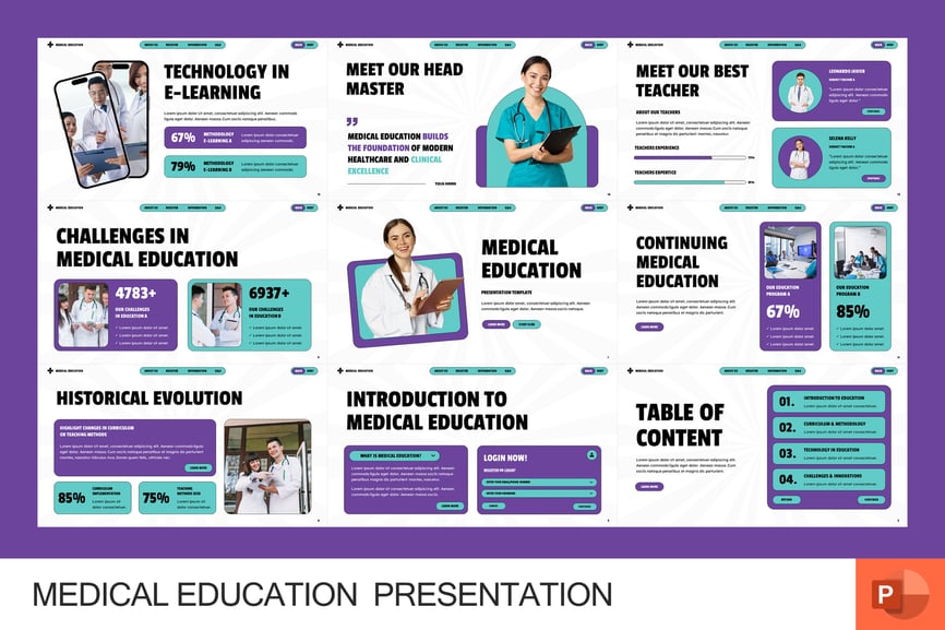 现代简洁的医学教育 Google 幻灯片模板 – 非常适合医疗保健培训、讲座和临床教学演示。