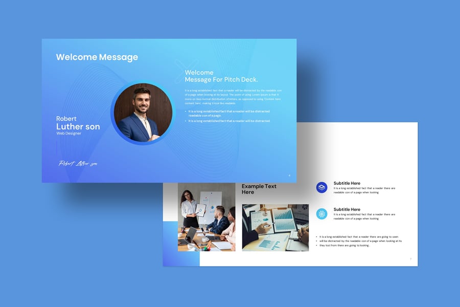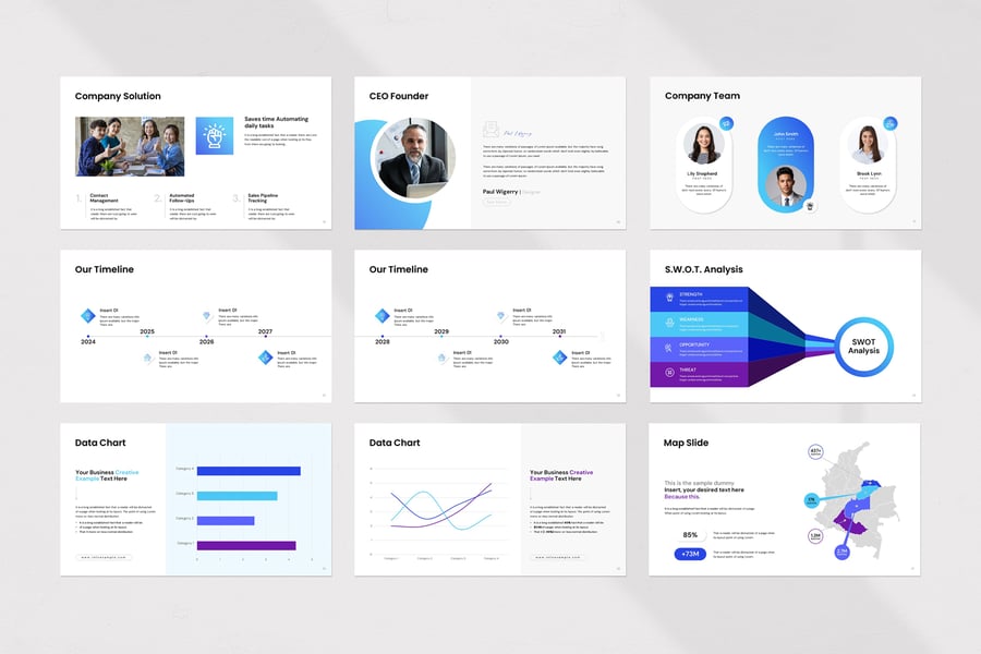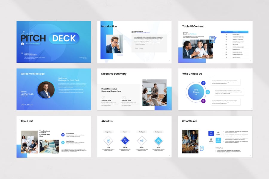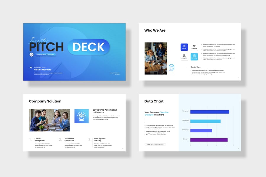 使用投资者推介演示文稿模板,以专业简洁的方式展示您的作品。这款模板设计简洁现代,功能强大,包含创意照片布局、信息图表、表格、矢量图标、示意图以及大量实用功能,可将您的作品和公司简介提升到一个新的高度。