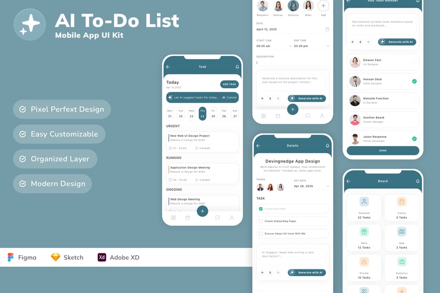 每个屏幕都可完全自定义,易于使用,并针对 Figma、Sketch 和 Adobe XD 进行了精心设计。