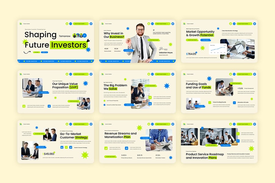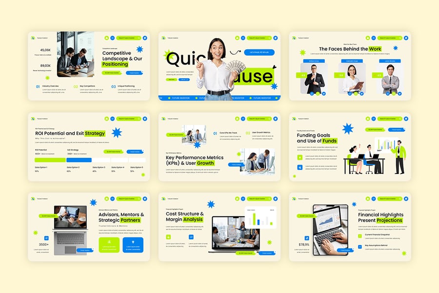 大家好!这是一个**商业投资者 PowerPoint 模板**,它采用现代、用户友好的设计,为您的演示文稿增添创意和编辑功能,包括易于自定义的颜色和字体,并且易于根据您的需求进行定制。**立即下载此模板**