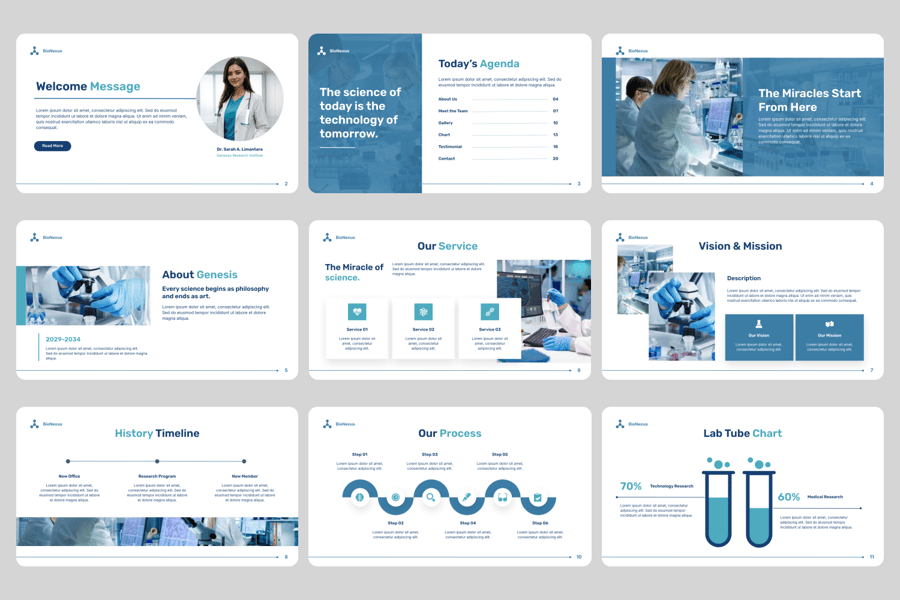 此模板非常适合科学家、教授、学生、医学研究人员以及学术或企业研究环境中的专业人士。您可以将其用于论文答辩、研究会议、实验报告、科学课程或专业演示,以有效地传达见解。