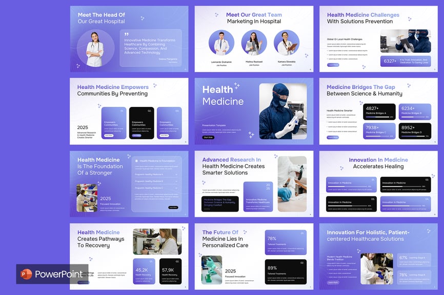 使用“健康医学”PowerPoint 演示文稿模板提升您的医疗保健演示文稿。该模板采用简洁、现代且专业的设计风格。独特的幻灯片、完全可编辑的图表、信息图表和医疗主题图标,让您能够以清晰易懂的方式轻松呈现复杂的医疗保健数据。该模板具有易于编辑的布局、拖放式图像占位符以及一致的配色方案,可增强可读性和可信度。