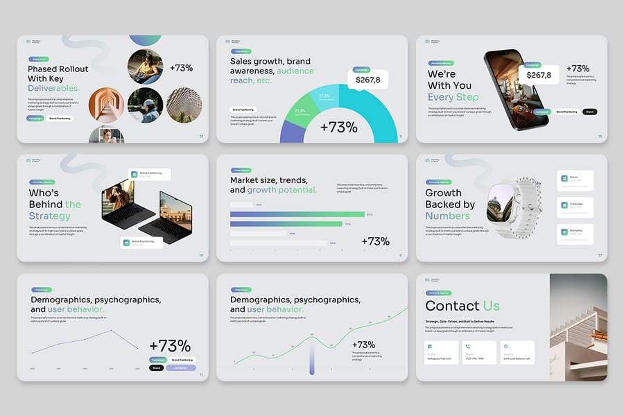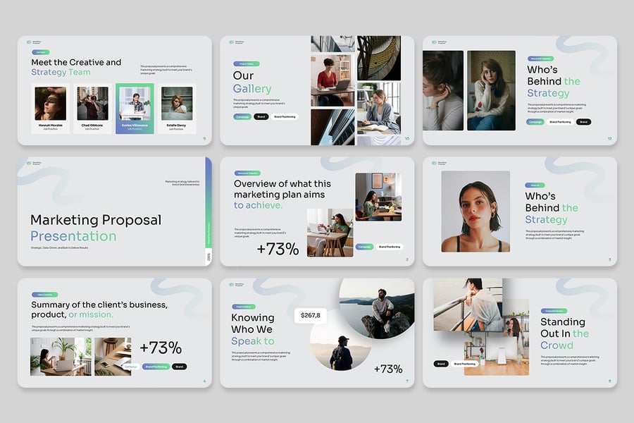 使用营销提案演示模板来提升您的提案——其中策略与设计相结合,说服力与专业性相结合。
