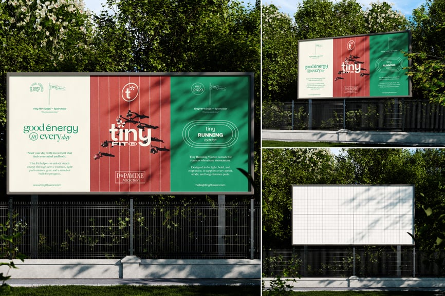 使用这款**逼真的户外广告牌模型**展示您的宣传活动。**大型垂直广告牌**从**视线水平的正面视角**(中等距离)高高耸立,背景是**铁丝网围栏**、**低矮的混凝土墙**和**郁郁葱葱的树木**。自然光线和城市绿植营造出真实的街边景象——非常适合用于城市广告、活动推广或品牌发布,让宣传更具真实感和冲击力。