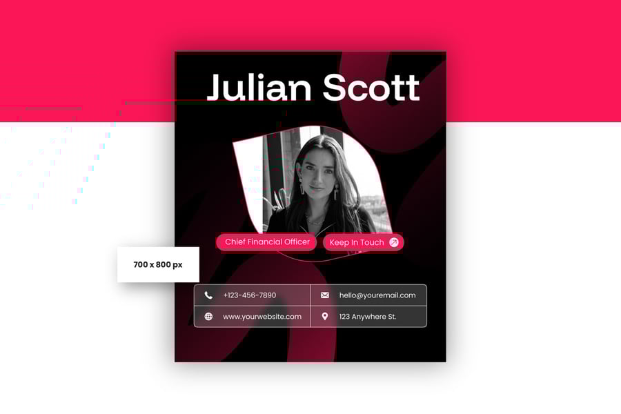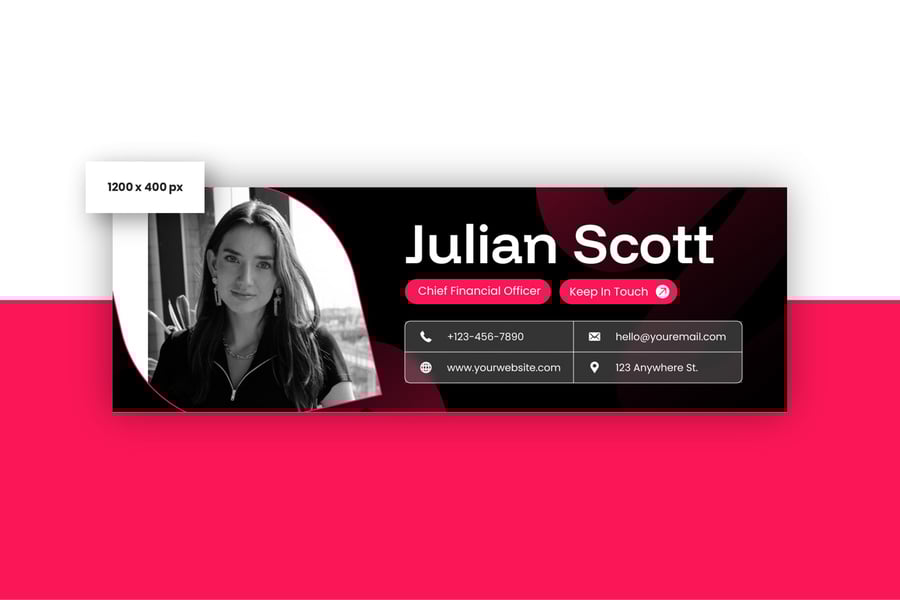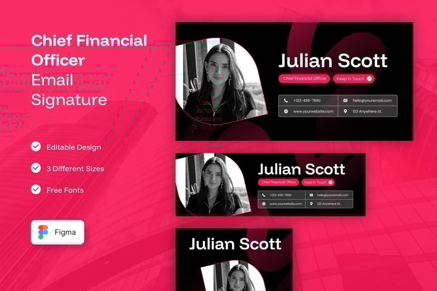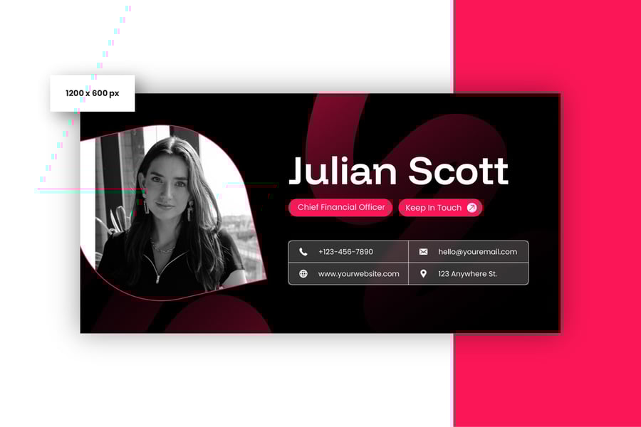 简洁专业的电子邮件签名设计,适用于商务或个人用途。一款设计提供三种不同尺寸,满足您的多种需求。现代、优雅、简洁的设计风格,令您的电子邮件签名更显专业。