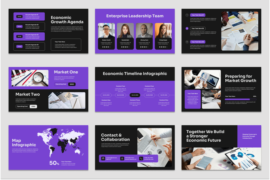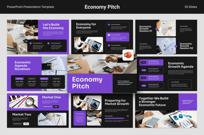 **完美适用于** 经济预测演示、市场机会推介、金融政策简报、投资分析演示文稿、业务增长提案、政府经济报告、研究报告、国际贸易推介、银行与金融研讨会演示文稿、企业战略会议、年度经济回顾、初创企业市场潜力推介、全球经济概览、教育经济学演示、智库报告演示文稿、发展项目提案、基础设施投资推介、利益相关者参与演示文稿、非政府组织经济影响报告、政策与改革提案