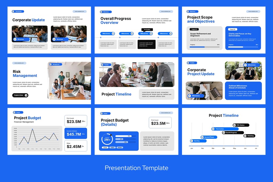 每周项目更新汇报、每月进度报告、客户项目简报、团队协调会议、利益相关者更新汇报、绩效评估演示、风险和问题跟踪汇报、任务进度报告、敏捷冲刺评审、里程碑成就演示、战略路线图更新、跨部门签到、项目结束报告、状态审查会议、变更管理更新、实施进度汇报、时间表跟踪报告、高管简报演示、持续项目沟通、董事会级项目更新