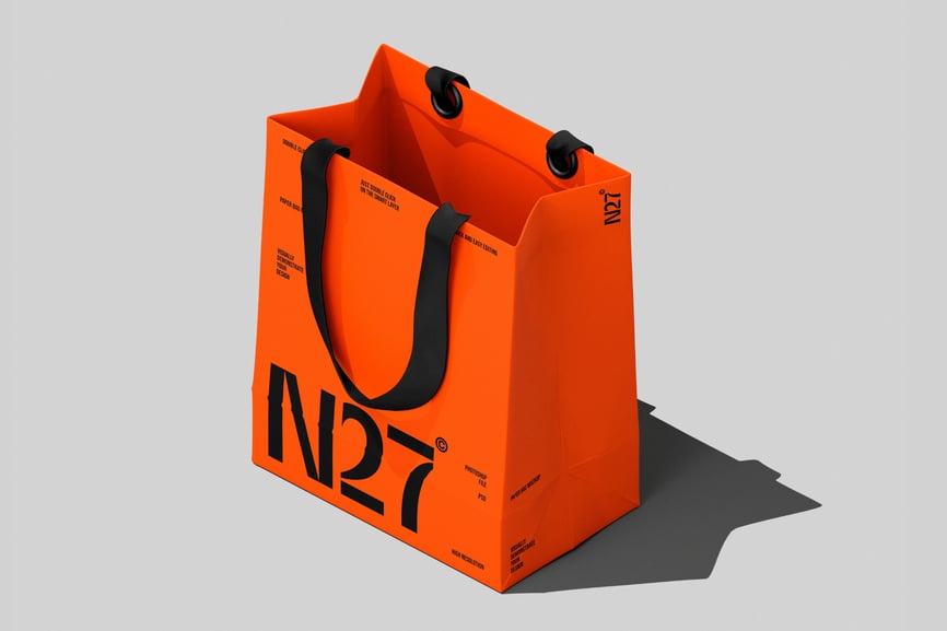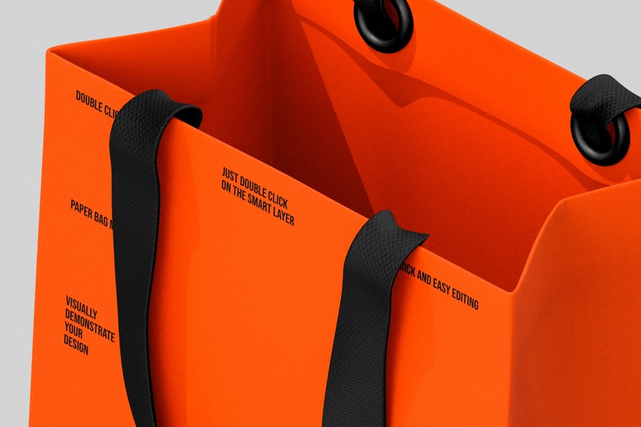 **纸袋模型** – 分层、可编辑的 .psd 文件,可通过编辑智能对象和颜色图层来展示您的自定义设计。