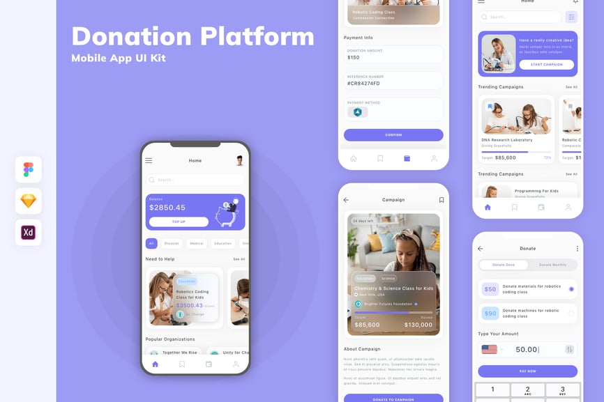 我们的 UI 工具包经过精心设计,可完美适配 Figma、Sketch 和 Adobe XD。所有文件都组织有序,命名规范,因此您可以轻松修改任何设计。