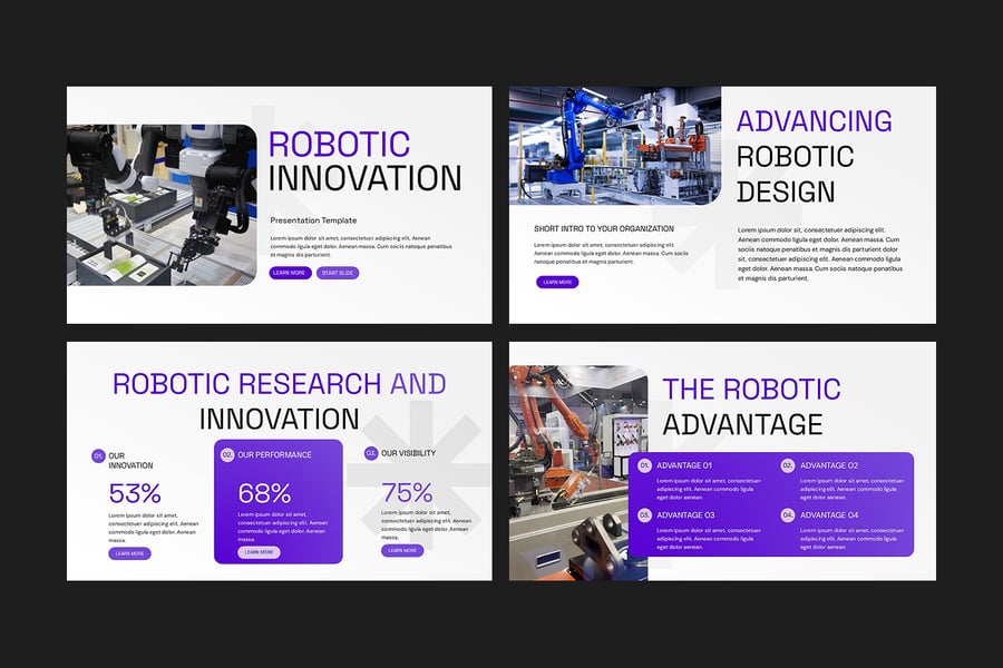 机器人创新 PowerPoint 模板 – 未来人工智能与自动化演示设计