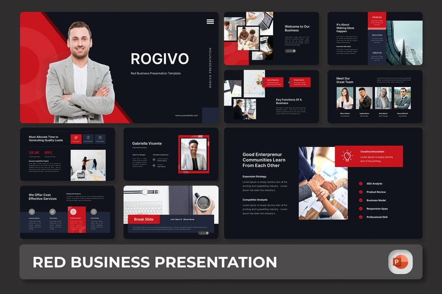 使用 **Rogive – 红色商务 PowerPoint 演示模板**,让您的想法脱颖而出。这款模板采用醒目的红色主题和简洁专业的布局,旨在吸引眼球,传递自信。Rogive 非常适合用于商务提案、报告和公司简介,其优雅的设计兼具创意与商务气息。易于自定义和结构化的幻灯片设计,使其成为清晰有力地展示数据、策略和关键见解的理想之选。