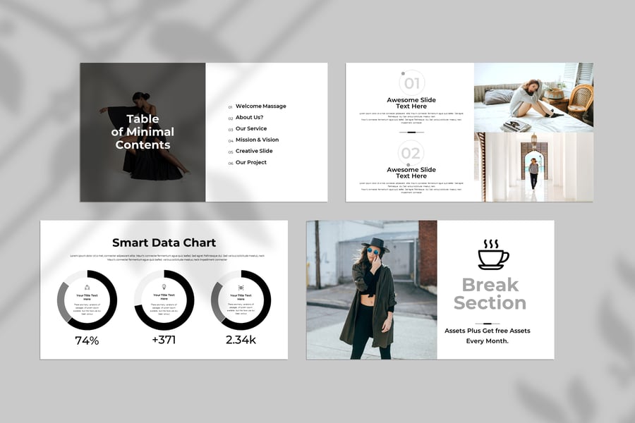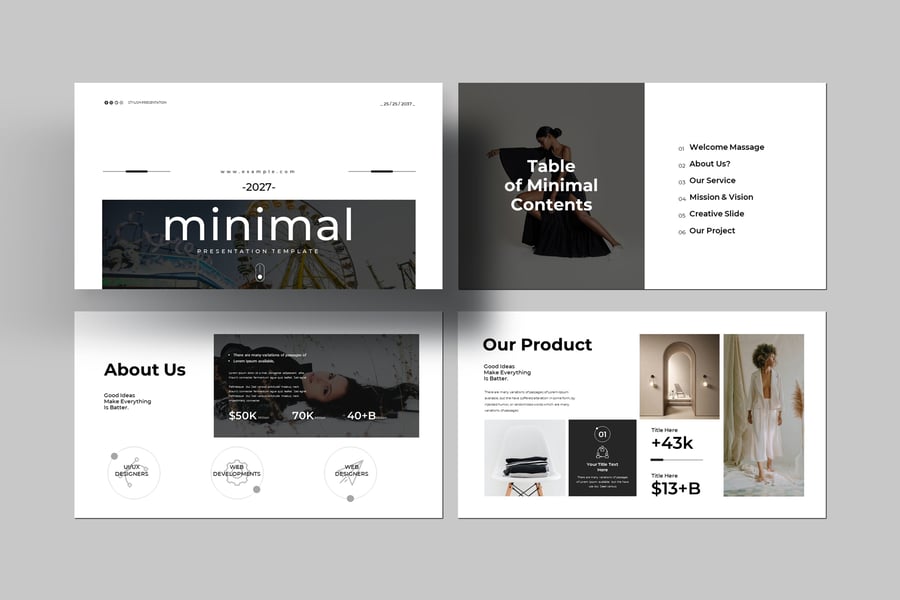 创意极简模板风格时尚,适应性强,可帮助您轻松打造鲜明的印象,而无需杂乱无章的设计。