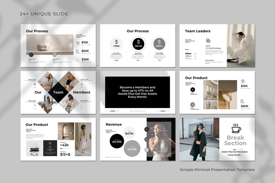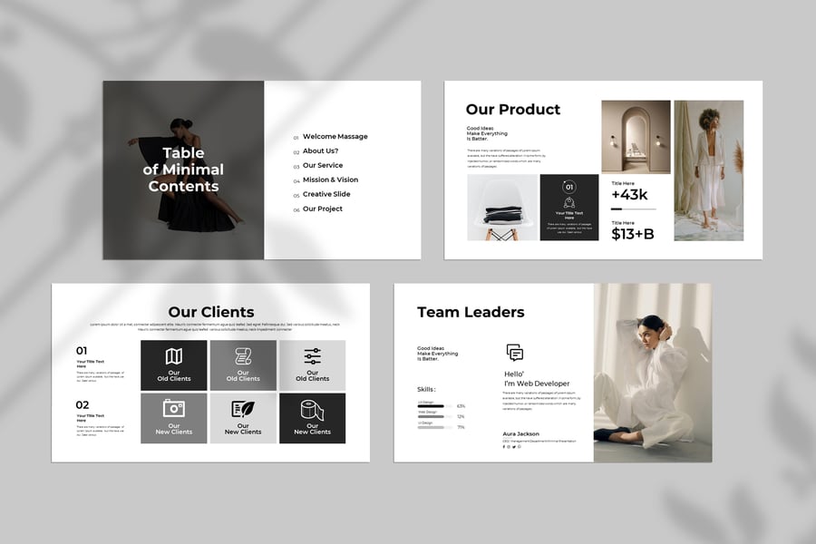 追求精致低调风格的专业人士、创业者和创意人士的理想之选。凭借清晰的布局、优雅的字体和巧妙的设计细节,该模板确保您的内容成为视觉焦点,同时保持精致的美感。