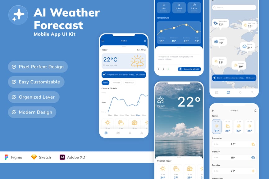 当前位置:首页UI素材Ui KitsAI天气预报移动应用UI套件