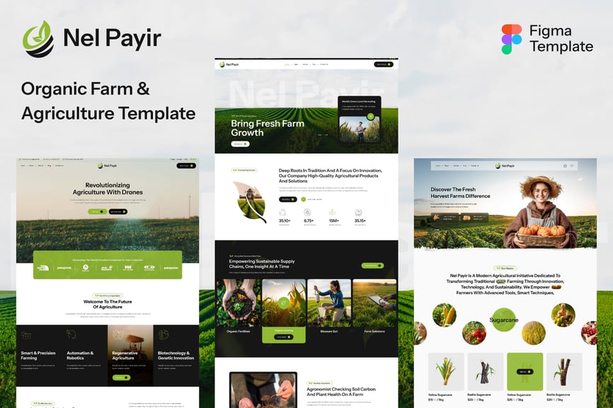 Nelpayir 是一款充满活力且现代的有机农业 Figma 模板,专为与天然食品和环保产品相关的企业和网站而设计。它是农业公司、健康食品博客、美食旅游平台和有机食品商店的理想之选。