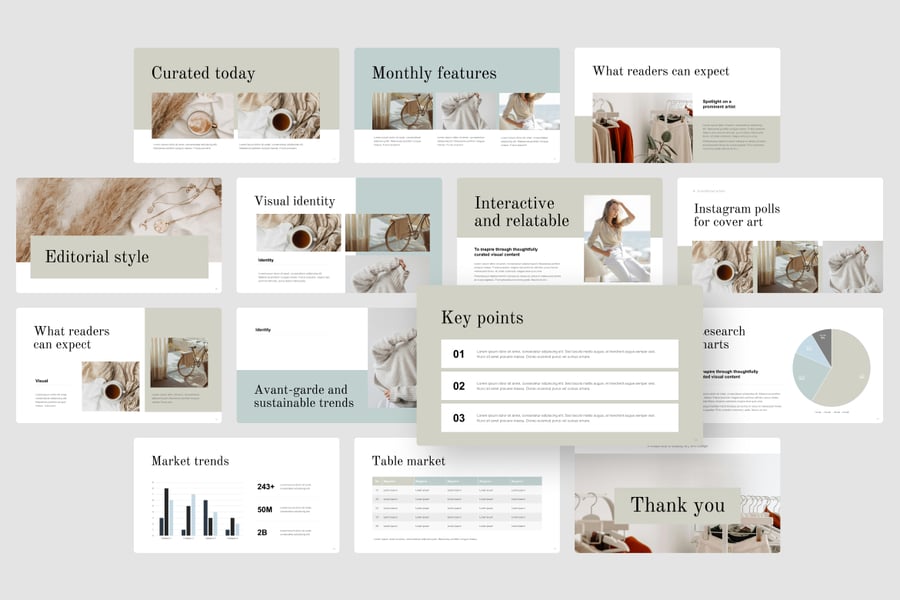 **非常适合:** 编辑演示文稿、生活方式品牌、创意机构、作品集展示、产品图册、艺术指导提案、内容展示。