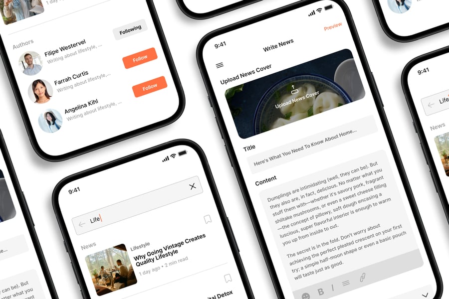 隆重推出**新闻**移动应用UI工具包,这是一款现代化且功能全面的解决方案,可帮助您创建简洁、用户友好的应用界面。对于希望加快设计流程的设计师和开发者而言,这款UI工具包堪称完美之选,它将您所需的所有基本组件整合在一个井然有序的软件包中。