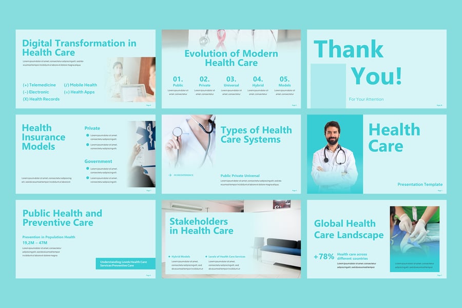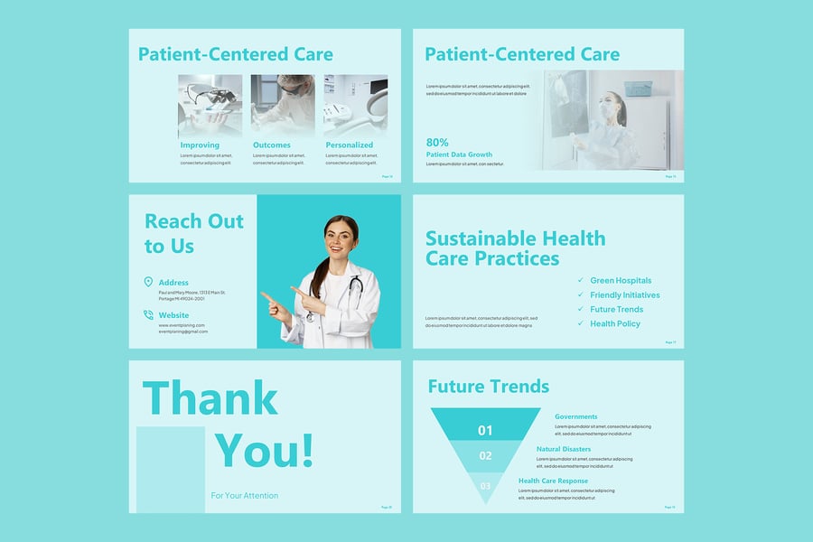 **应用场景:** 医疗保健演示文稿、医疗模板、医院简介、诊所演示文稿、患者护理幻灯片、医学研究演示文稿、健康意识宣传、健康计划、医疗保健服务、医生简介模板