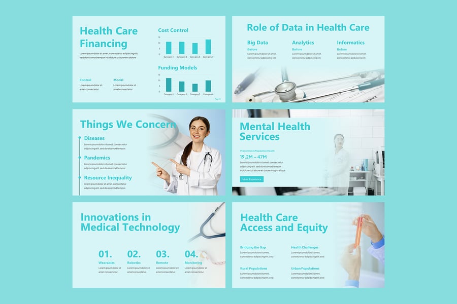 这款医疗保健演示模板设计简洁专业,旨在以清晰易懂的方式突出展示医疗服务、健康倡议和患者护理项目,增强公众信任感。该模板适用于医院、诊所、医疗机构、健康组织和健康项目,包含机构介绍、医疗服务、医疗部门、医生和员工简介、患者护理计划、健康统计数据、研究亮点和未来医疗创新等版块。模板采用现代化的布局、医疗主题图形、清晰的信息图表和专业的视觉效果,确保复杂的健康信息以易于理解且令人信服的方式呈现。该模板功能齐全且用途广泛,可完全自定义,是医学会议、健康宣传活动、机构简介或患者教育演示的理想之选,是提升医疗保健水平和建立公众信任的必备工具。