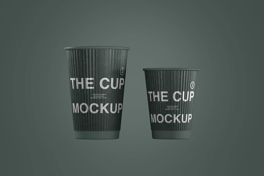此模型展示了两种尺寸的纸质咖啡杯,适用于品牌推广和包装展示。它适用于咖啡馆、外卖店和饮品设计演示