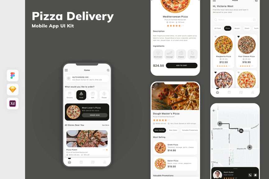 当前位置:首页UI素材Ui Kits披萨外卖移动应用 UI 套件