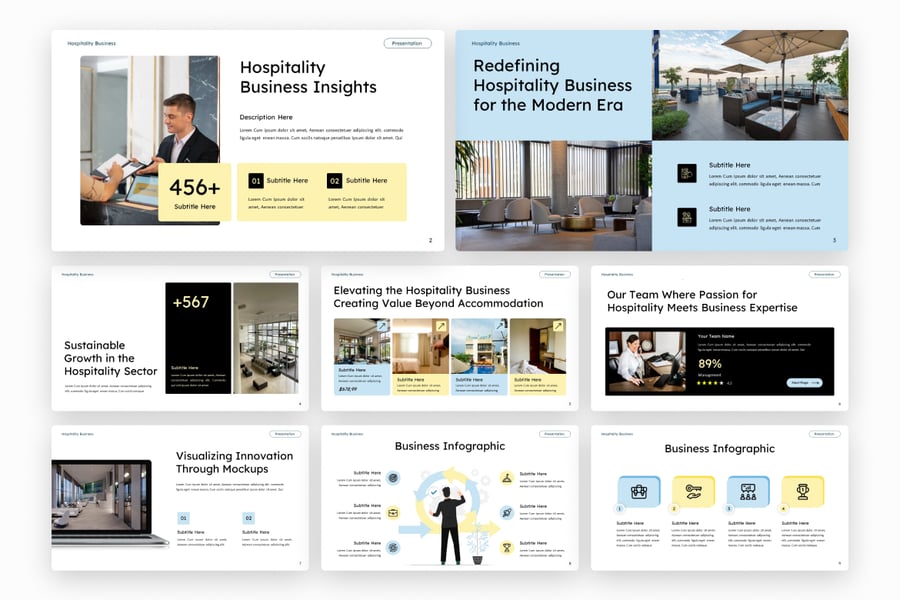 这款专业的 PowerPoint 模板专为酒店行业设计,采用现代简洁的布局、创意信息图表和酒店服务展示。此可编辑演示文稿非常适合突出展示旅游住宿行业的可持续住宿策略、增长洞察和品牌推广机会。该模板完美适用于酒店经营者、咨询顾问和企业团队,其高端优雅的风格彰显专业性和创新性,可用于投资者会议、客户提案和战略规划。