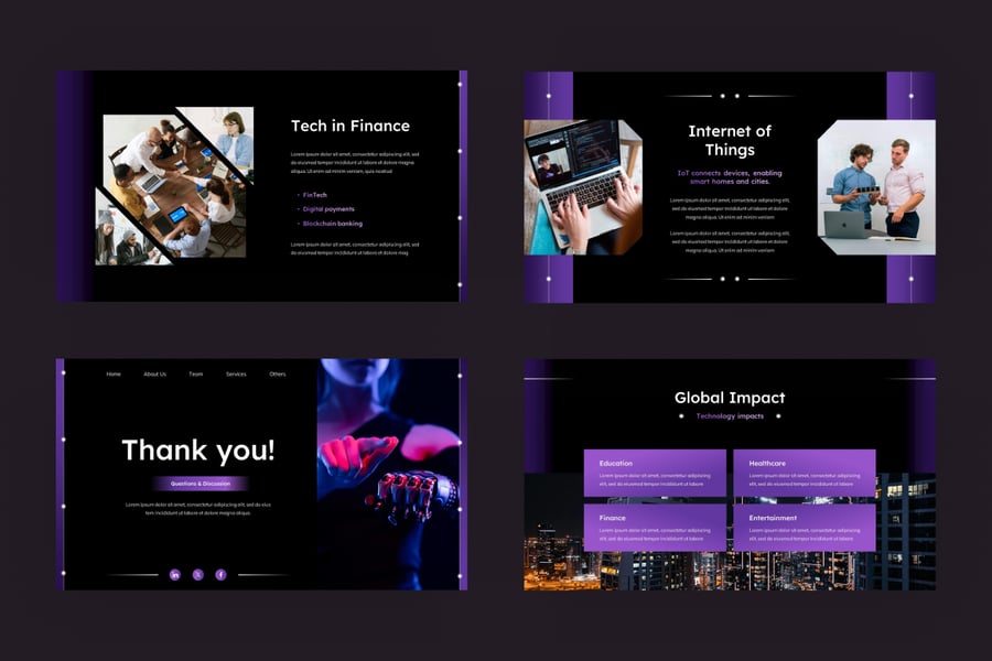 技术为当今组织打造了一套简洁、现代、多功能的工具包,涵盖战略和执行层面。它融合了人工智能突破、可扩展的云基础架构、强大的网络安全以及以人为本的变革,助力企业将愿景转化为实际影响。该工具包围绕人工智能、云计算、网络安全、数字化转型、未来工作和医疗科技等核心主题构建,在清晰度和创意性之间取得平衡,满足重视简约现代视觉效果的团队的需求。