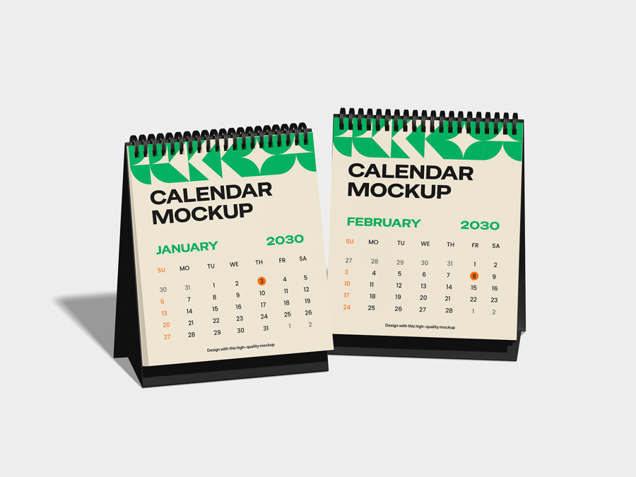 使用这款**日历样机**展示您的日历设计,它非常适合用于**企业品牌推广、促销礼品、办公文具和年度计划展示**。这款样机突出了简洁的布局结构、清晰易读的日期网格和逼真的纸张效果,呈现出专业水准。