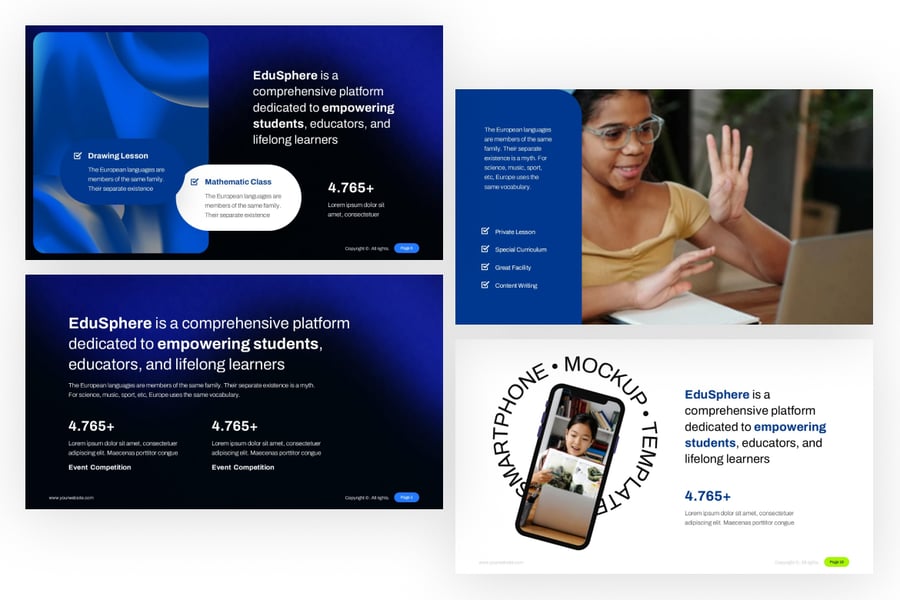 EduSphere PowerPoint模板是一款简洁、专业且充满科技感的演示文稿模板,专为教育和在线学习领域而设计。凭借其清晰的布局、蓝绿色调和现代化的信息图表,该模板非常适合展示学术平台、教育创业公司、在线学习系统和机构报告。EduSphere将科技与教育相结合,提供数据驱动的可视化图表和流程图,帮助传达学习成果、学生参与度和创新教学方案。其未来感十足的设计为任何教育或商业演示带来清晰度、可信度和影响力。