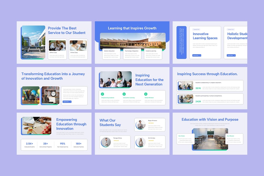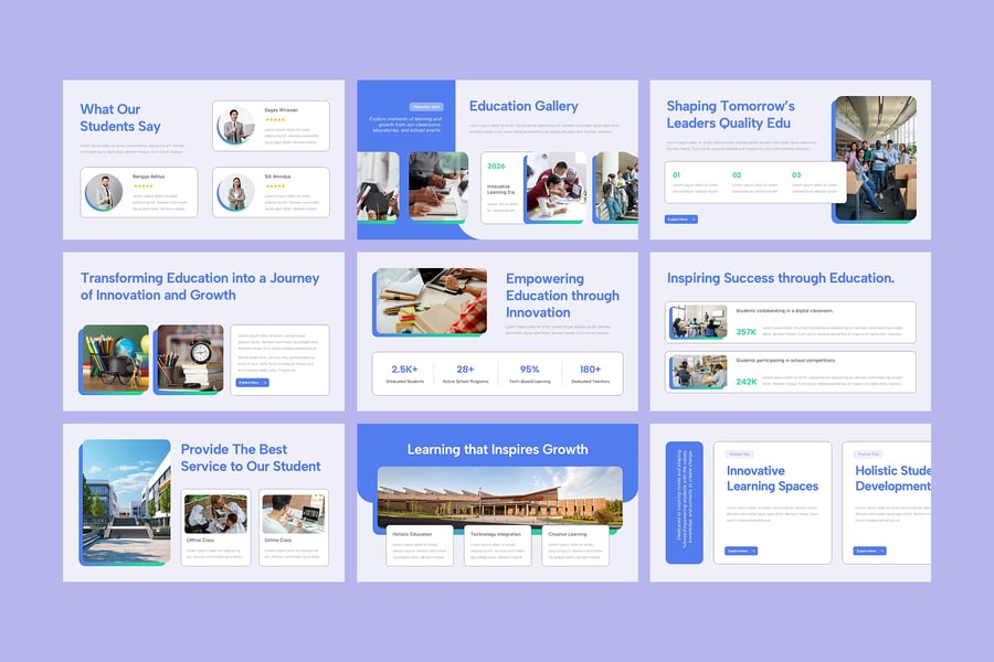 使用这款教育类 PowerPoint 演示模板,让教育焕发活力。这套专业设计且完全可定制的演示文稿包,是学校、教师、学生和学术机构的理想之选。这款现代而富有创意的模板旨在帮助您清晰而时尚地展示课程、学校报告、学术项目、在线学习模块或大学提案。简洁的布局、鲜艳的色彩和易于编辑的内容,确保每一张幻灯片都引人入胜且富有教育意义。