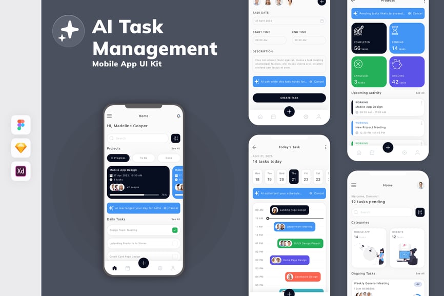 我们的 UI 工具包经过精心设计,可完美适配 Figma、Sketch 和 Adobe XD。所有文件都组织有序,命名规范,因此您可以轻松修改任何设计。