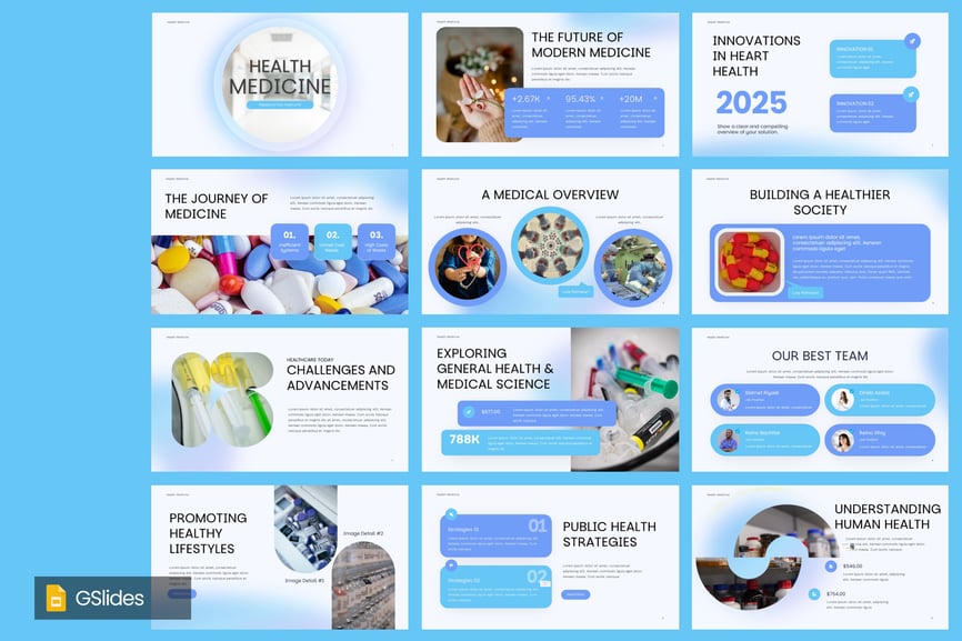 **现代健康与医学谷歌幻灯片模板 – 专业医学演示设计**