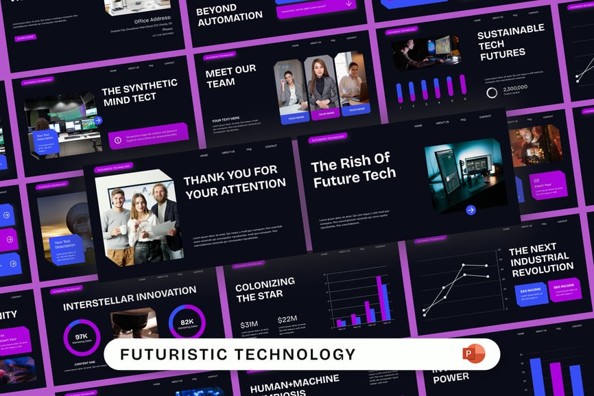 无论您是准备技术推介演示文稿、数字项目提案还是创新战略,此技术 PowerPoint 模板都能确保您的信息专业、引人入胜且面向未来。