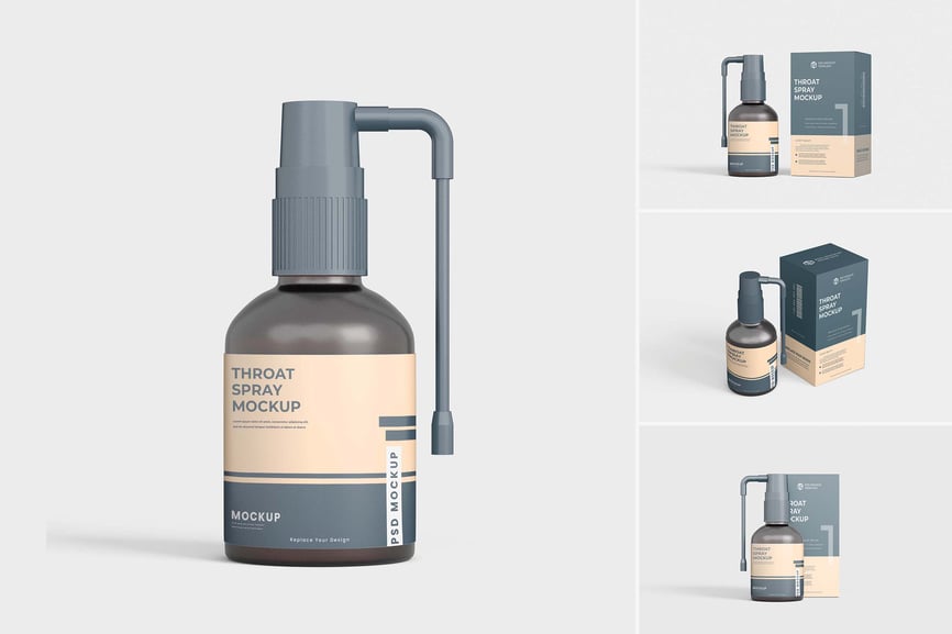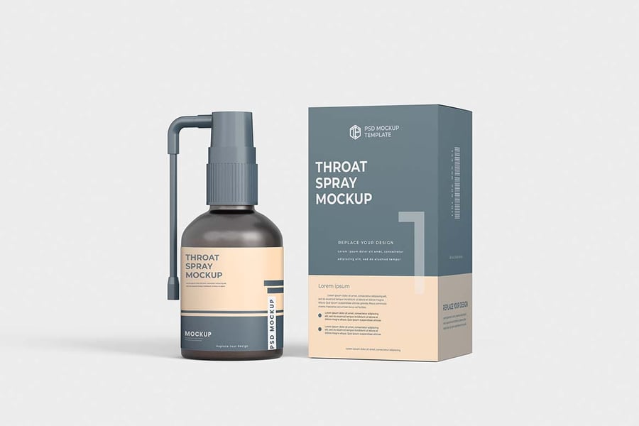 使用这款喉咙喷雾瓶模型,以正确的方式展示您的喉咙喷雾瓶模型设计!只需使用 Photoshop 的智能对象,一键即可放置您的设计。就这么简单!