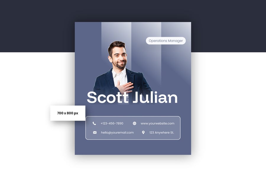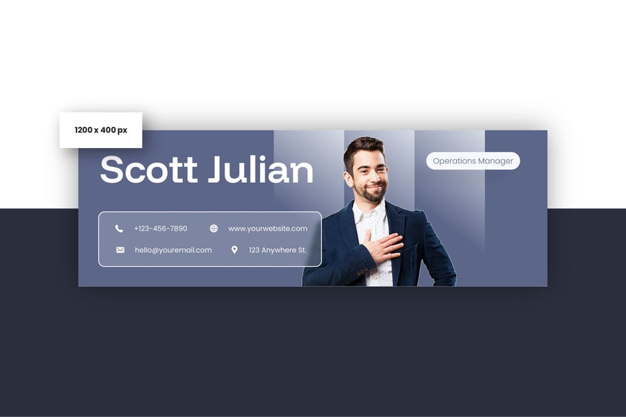 简洁专业的电子邮件签名设计,适用于商务或个人用途。一款设计提供三种不同尺寸,满足您的多种需求。现代、优雅、简洁的设计风格,令您的电子邮件签名更显专业。