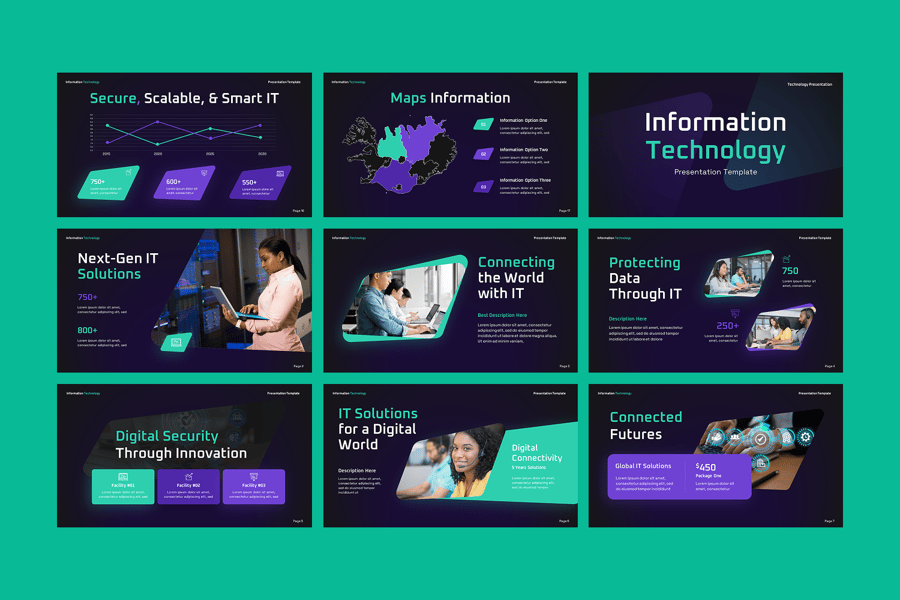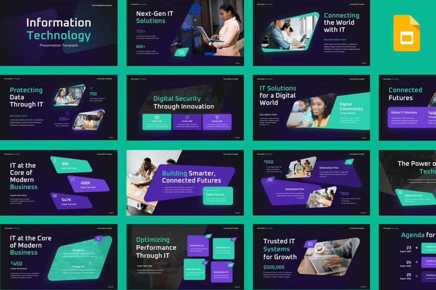 使用信息技术 Google 幻灯片演示模板,提升您的技术演示效果。这款现代化、专业且完全可定制的幻灯片模板专为 IT 公司、初创企业、软件开发商和数字机构设计。该模板包含简洁的布局、数据驱动的图表、设备模型和信息图表元素,助您清晰而时尚地展示复杂的技术信息。