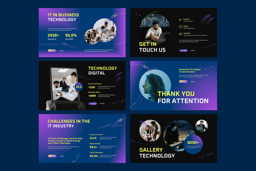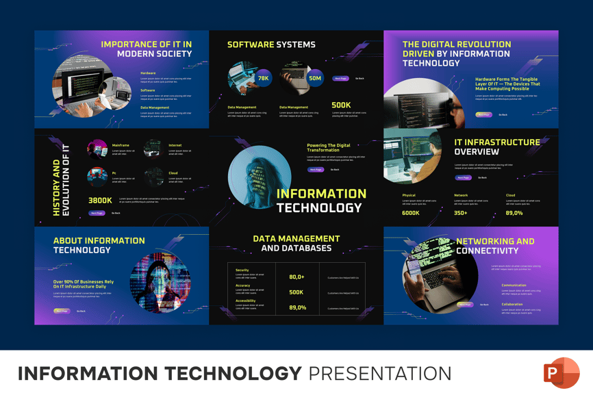 这款模板采用现代科技主题设计,布局清晰,字体简洁,视觉效果专业,每张幻灯片都能精准地传达IT概念和策略。信息图表、示意图、示意图和视觉占位符可用于展示工作流程、系统设计、性能指标和项目计划。该模板非常适合团队简报、客户演示、IT提案和技术研讨会,助您打造专业、精彩且极具视觉冲击力的信息技术演示文稿。