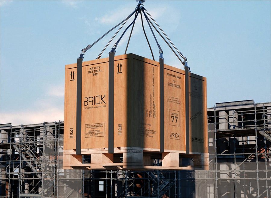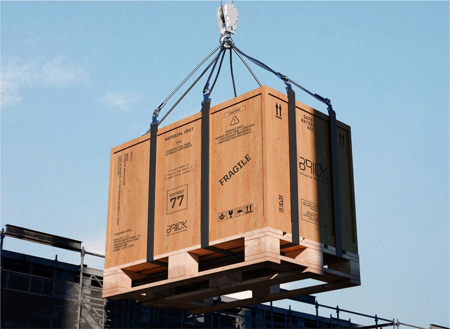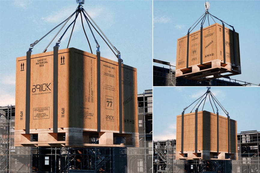 这款可编辑的建筑材料箱模型由起重机吊起,可为物流和工业品牌推广提供逼真、专业的视觉效果,给客户留下深刻印象。
