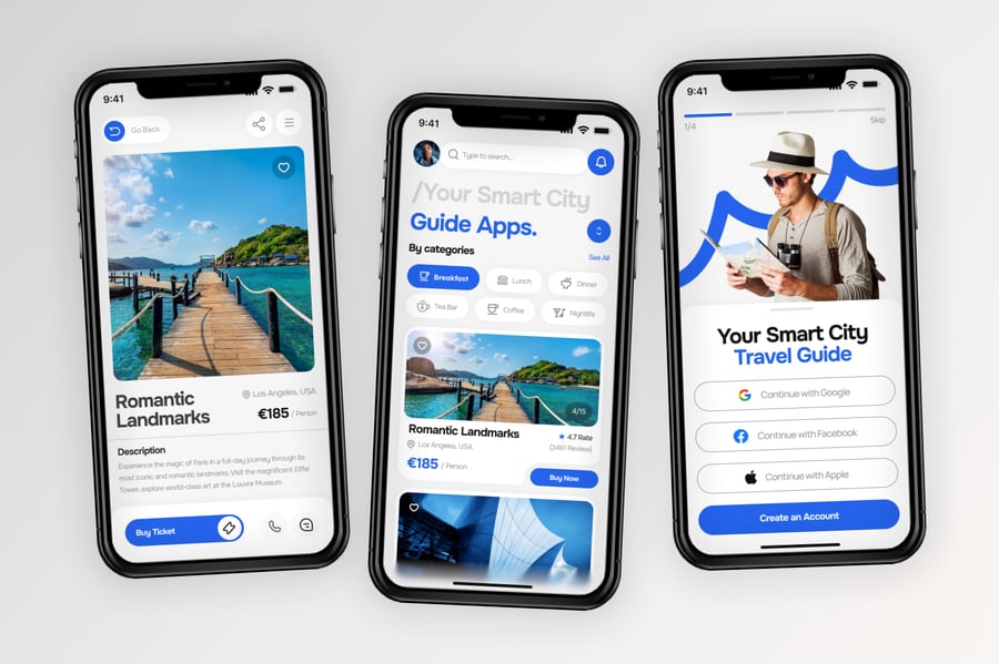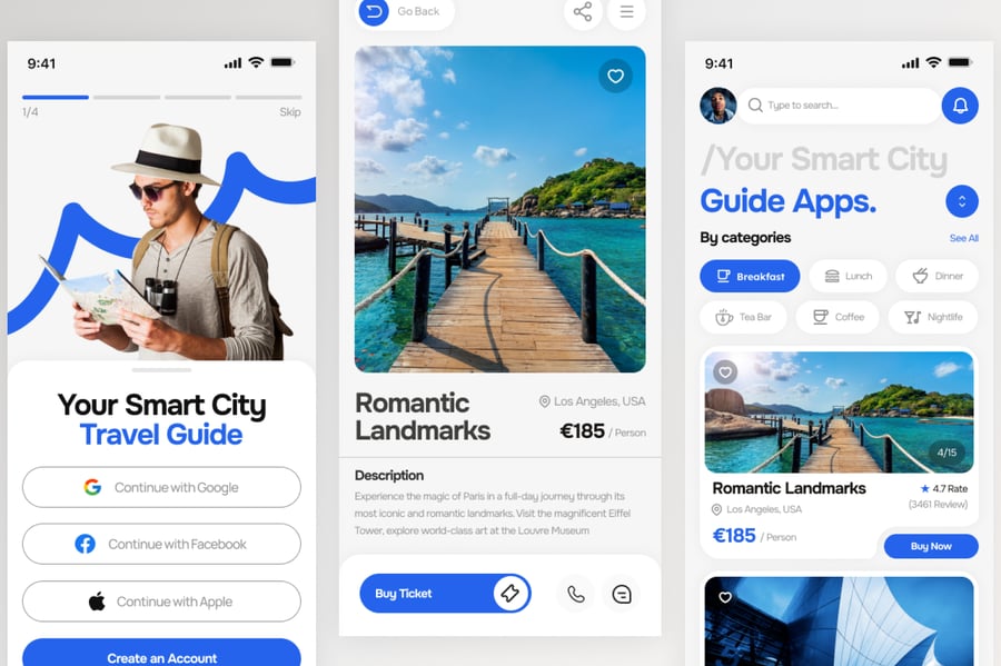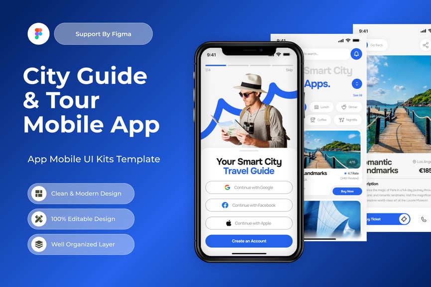 使用这款专业设计的模板,轻松打造极具影响力的城市指南和旅游移动应用。
